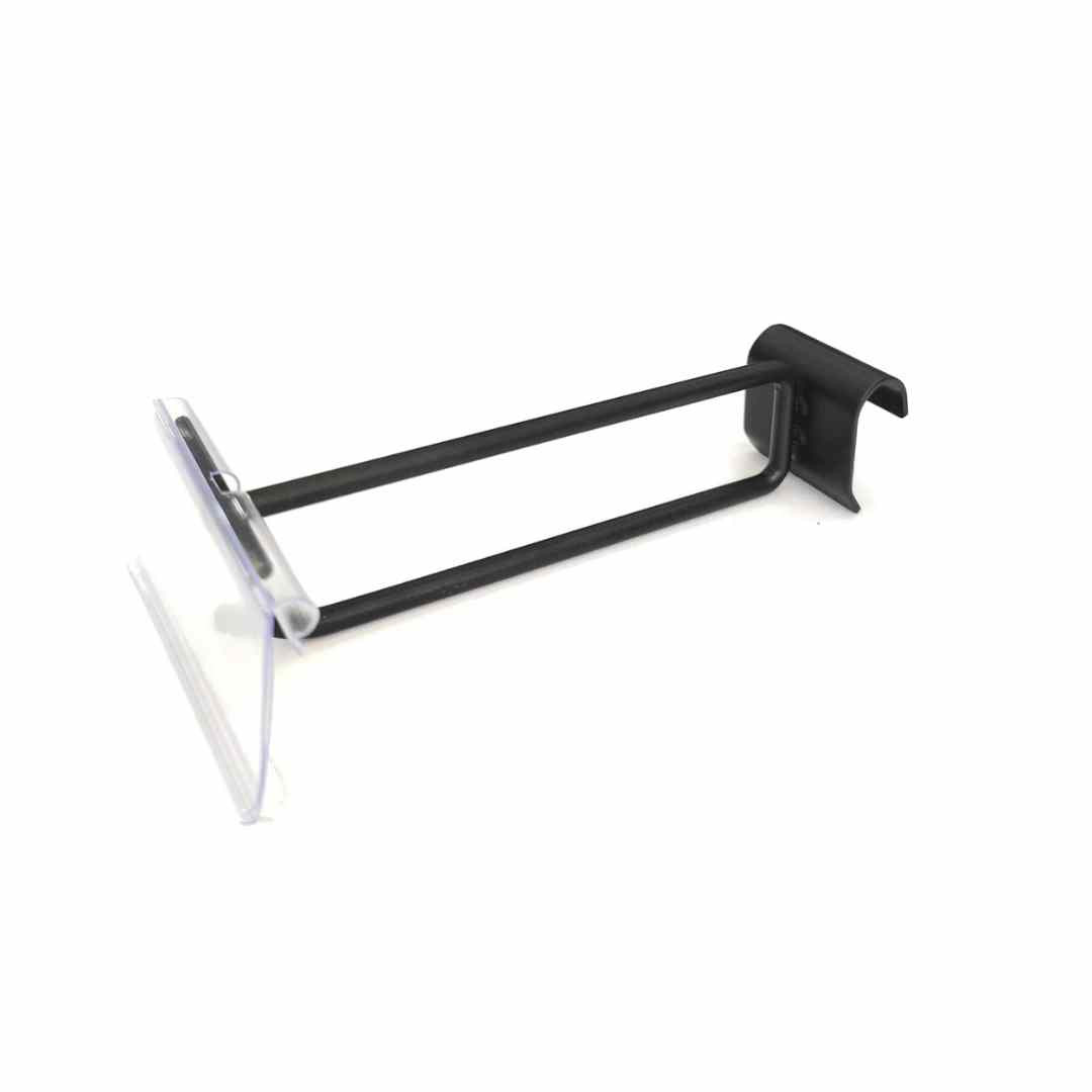 The Oval Pipe Tag Hooks with Plastic Clear Tag are ideal for labeling and organizing products in a retail setting. Designed to fit seamlessly with oval pipe systems, these hooks include a clear plastic tag holder for pricing or product info. Available in Black, Chrome, and Hammer Grey finishes, they combine practicality with a clean and modern display look.