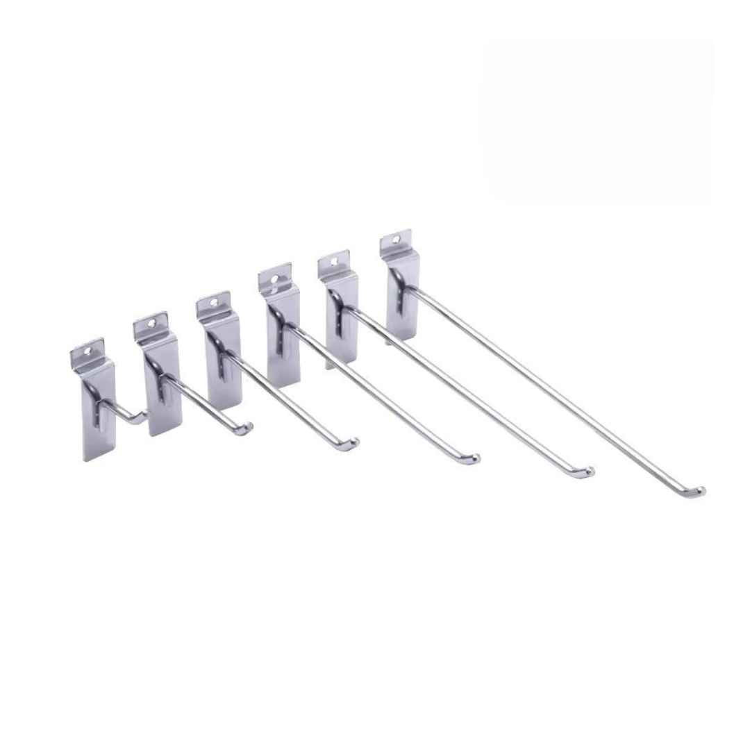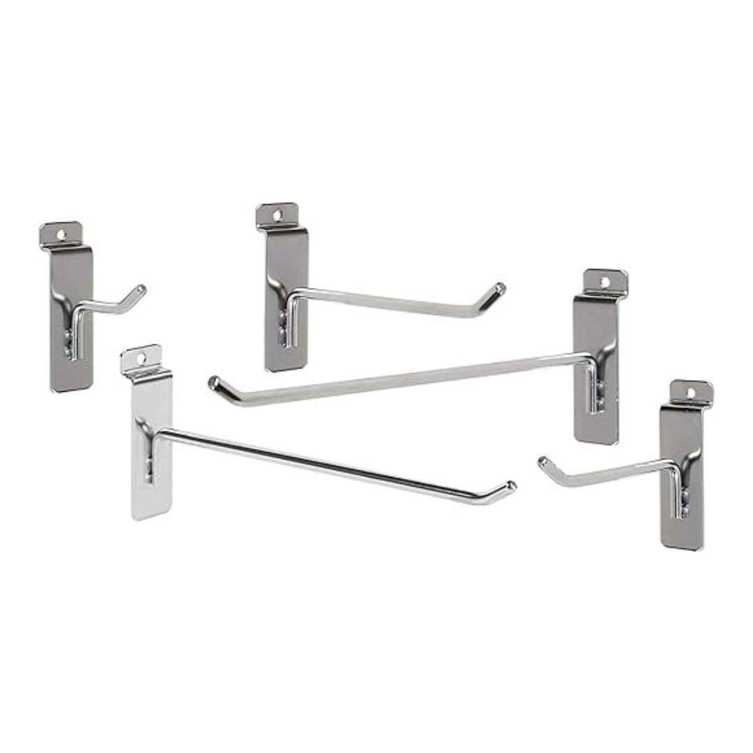 Strong and sleek slat board display hooks! The chrome-plated finish looks professional and resists rust. Perfect for showcasing products neatly on slat walls. Easy to install, sturdy, and ideal for retail displays or organized storage!
