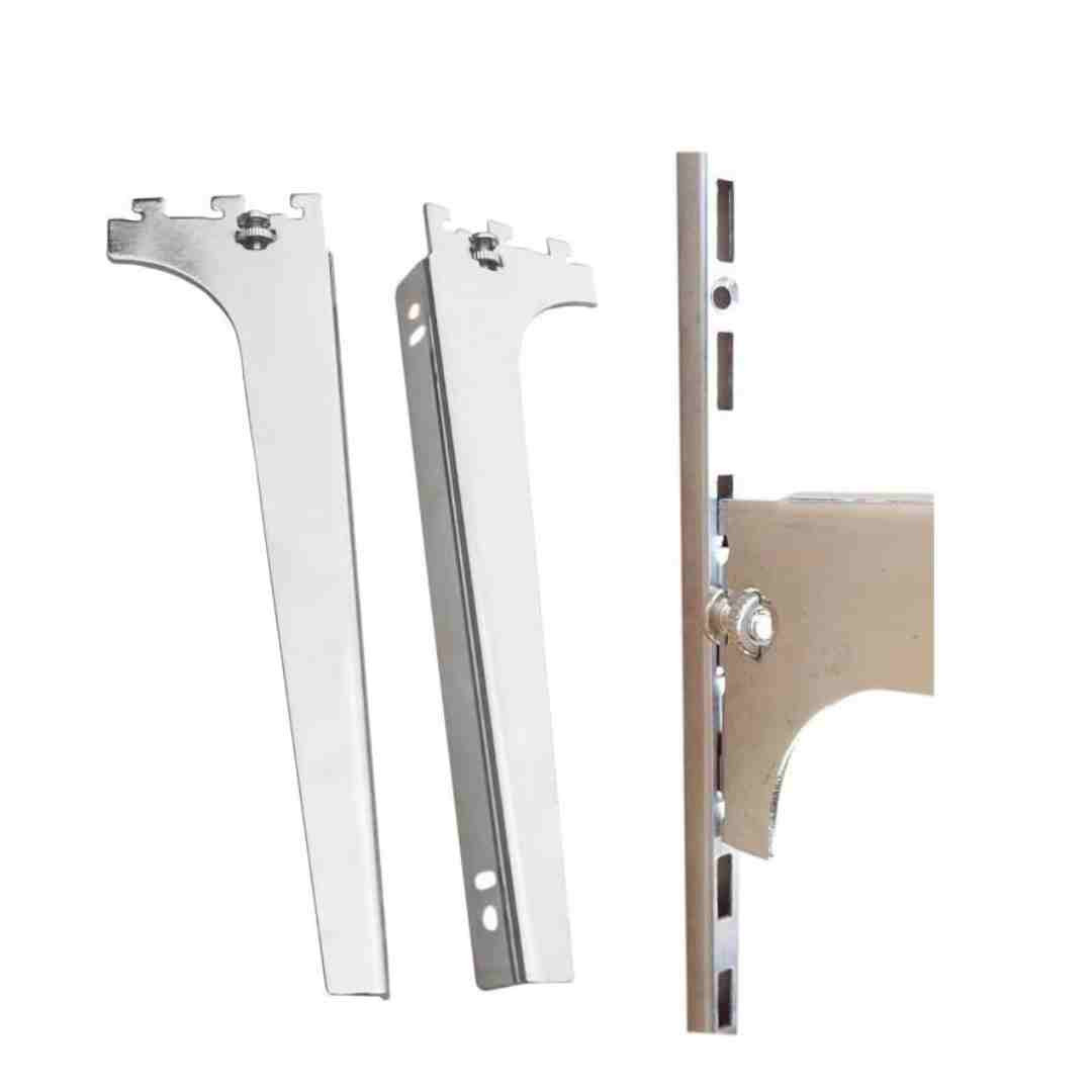 The Slim Channel Wooden Bracket Left & Right Chrome Plated is a reliable and elegant solution for supporting wooden shelves or rods within slim channel systems. With designated left and right components, it ensures balanced support and precise alignment. The chrome-plated finish adds a modern look while protecting against rust and wear, making it suitable for wardrobes, cabinets, and custom shelving.