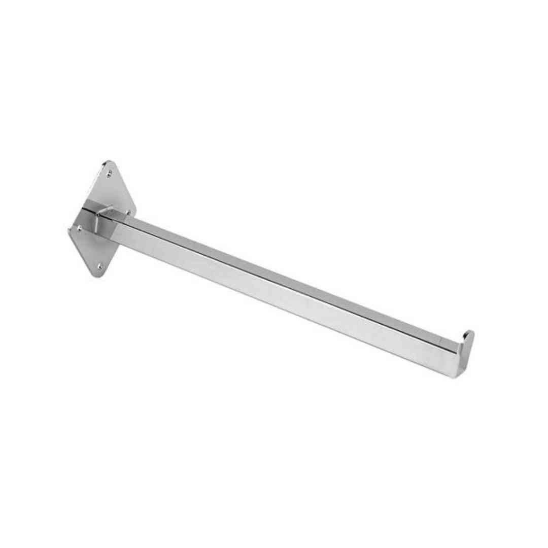 The Wall Face Out Square Chrome Plated is a durable and stylish display accessory designed for showcasing garments in a forward-facing arrangement. Its sleek square design and chrome finish make it ideal for retail environments, providing both visibility and strength for clothing displays on slat walls or wall-mounted brackets.