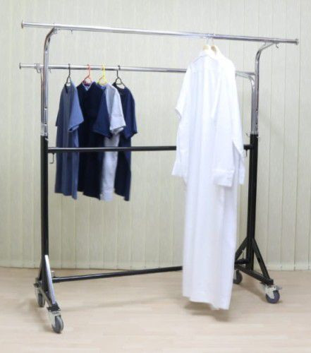 The Double Heavy Duty Garment Rack Black + Chrome is a robust and versatile display solution, ideal for showcasing clothing in retail stores, warehouses, or exhibitions. Its combination of black and chrome finishes adds a modern touch to any space, while its sturdy construction ensures long-lasting use.