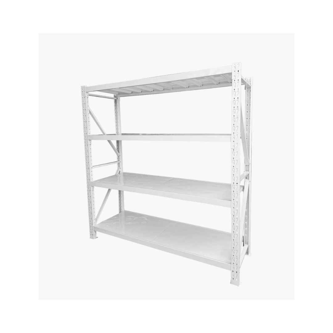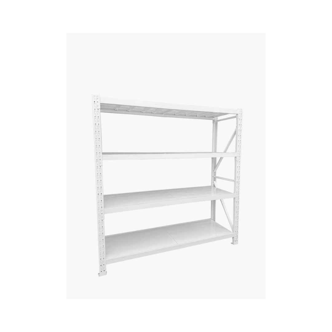 The Storage Rack with a 200Kg weight capacity per layer in pure white finish is a perfect solution for organizing heavy-duty items in warehouses, retail outlets, and industrial storage spaces. With four sturdy levels, this rack offers reliable support for tools, inventory, and supplies, all while maintaining a clean, modern aesthetic. Its steel construction ensures long-lasting durability and load-bearing performance.
